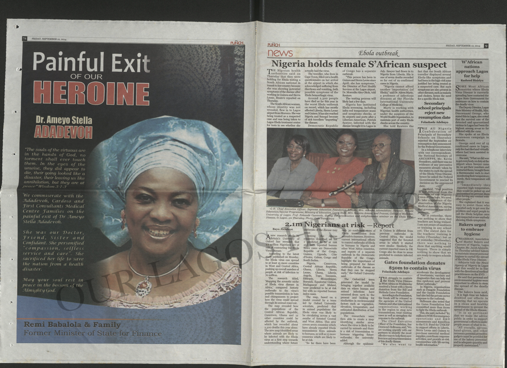 With permission from our donors, Our Lagos History has provided access to an obituary and newspaper scans describing Dr. Adadevoh’s role in curbing Nigeria’s Ebola outbreak.